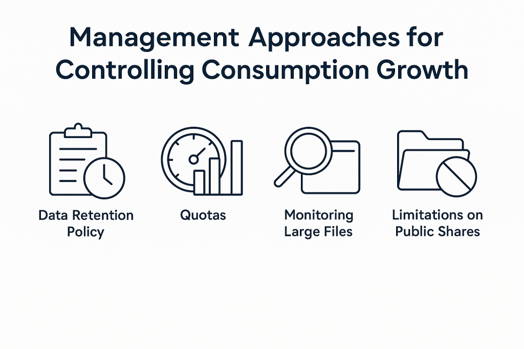 - تعیین حداکثر مصرف برای هر کاربر یا تیم (مثلاً 200GB برای مالی، 50GB برای کارشناس)